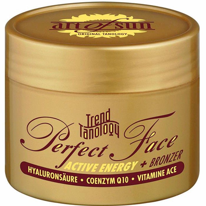 Ухаживающий крем Perfect Face для бронзового загара лица и декольте с 3-ми бронзаторами. Комбинация действующих компонентов средства (коэнзим Q10, гиалуроновая кислота, витамины А, С, Е) активизирует поглощение кислорода клетками и способствует самостоятельной регенерации кожи. Одновременно увеличивается способность кожи сохранять влагу и усиливается насыщенность загара.