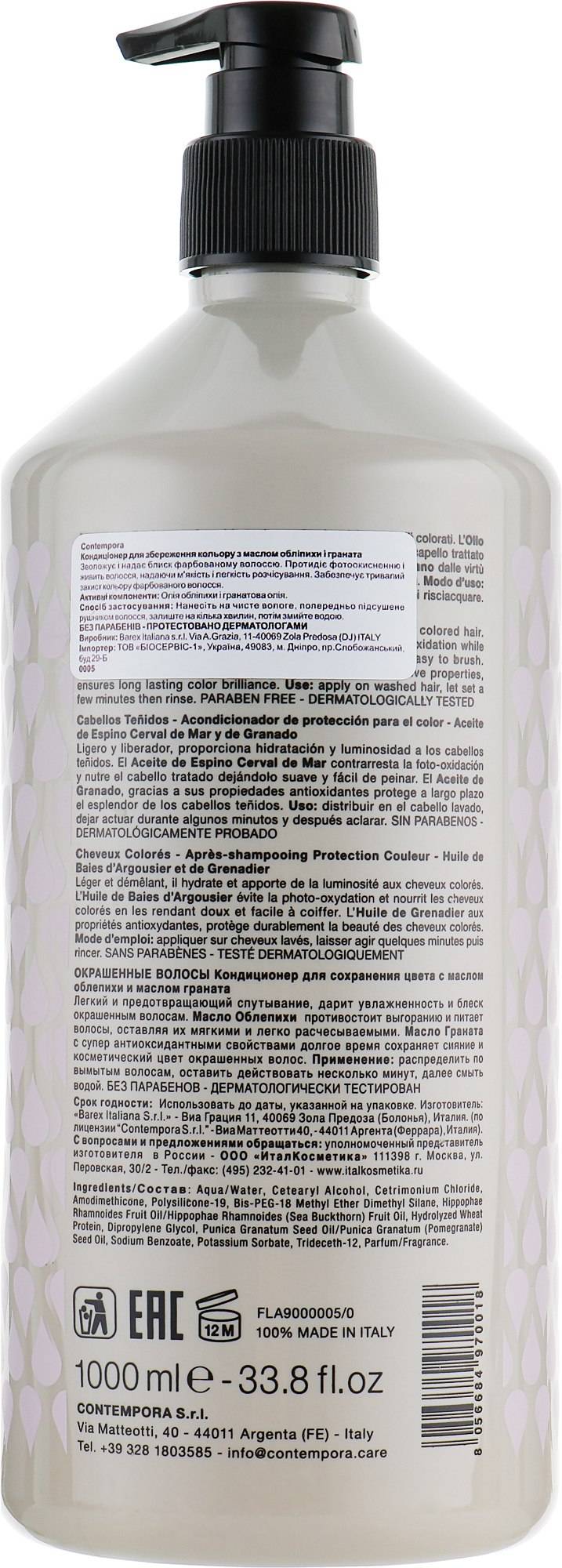 Специализированный ухаживающий кондиционер бренда Barex Italiana разработан для сохранения и защиты от вымывания цвета локонов. Средство восстанавливает структуру волос, поврежденных окрашиванием и другими воздействиями внешней среды, разглаживает кутикулу волоса, увлажняет и удерживает влагу внутри него, создавая невидимую защитную пленку вокруг каждого волоса. Кондиционер придает объем, блеск и мягкость локонам, сохраняя их цвет как можно дольше.