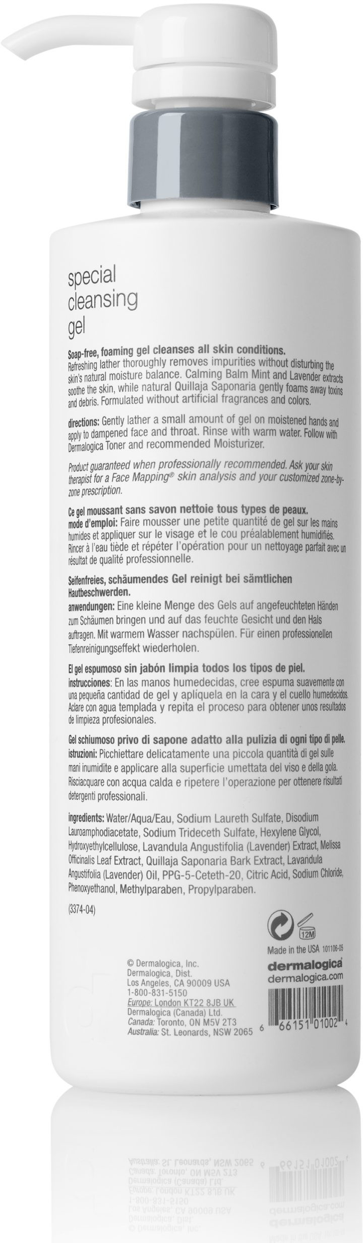 Применение: выполните двойное очищение Dermalogica, используя на первом этапе Precleanse. Затем вспеньте небольшое количество геля во влажных руках и распределите массирующими движениями по коже лица и шеи. Тщательно смойте теплой водой.