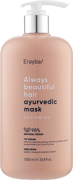 Лечебная маска Erayba ABH Ayurvedic Mask обеспечит волосам качественный и надлежащий уход. Высокоактивные растительные компоненты средства оказывают интенсивный увлажняющий и питательный эффект, насыщают необходимыми витаминами и минералами, активно восстанавливают поврежденную структуру волос, минимизируют сечение, а так же оказывают антиоксидатное действие, делая волосы более устойчивыми к пагубному влиянию погодных условий и УФ-излучения. Маска разглаживает и смягчает локоны, придавая им прочность, мягкость и шелковистость. Средство отлично подойдёт поврежденным волосам, особенно после химических процедур и регулярных температурных обработок.