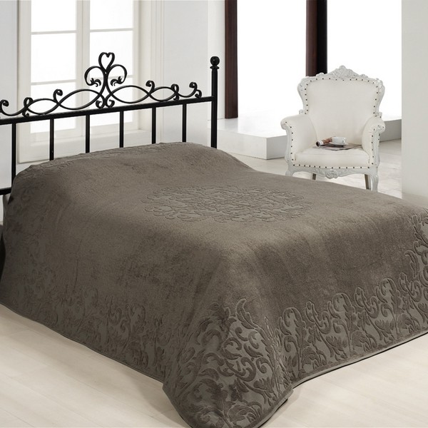 Серое покрывало с выпуклым оригинальным орнаментом украсит вашу комнату и подарит вам чувство комфорта.