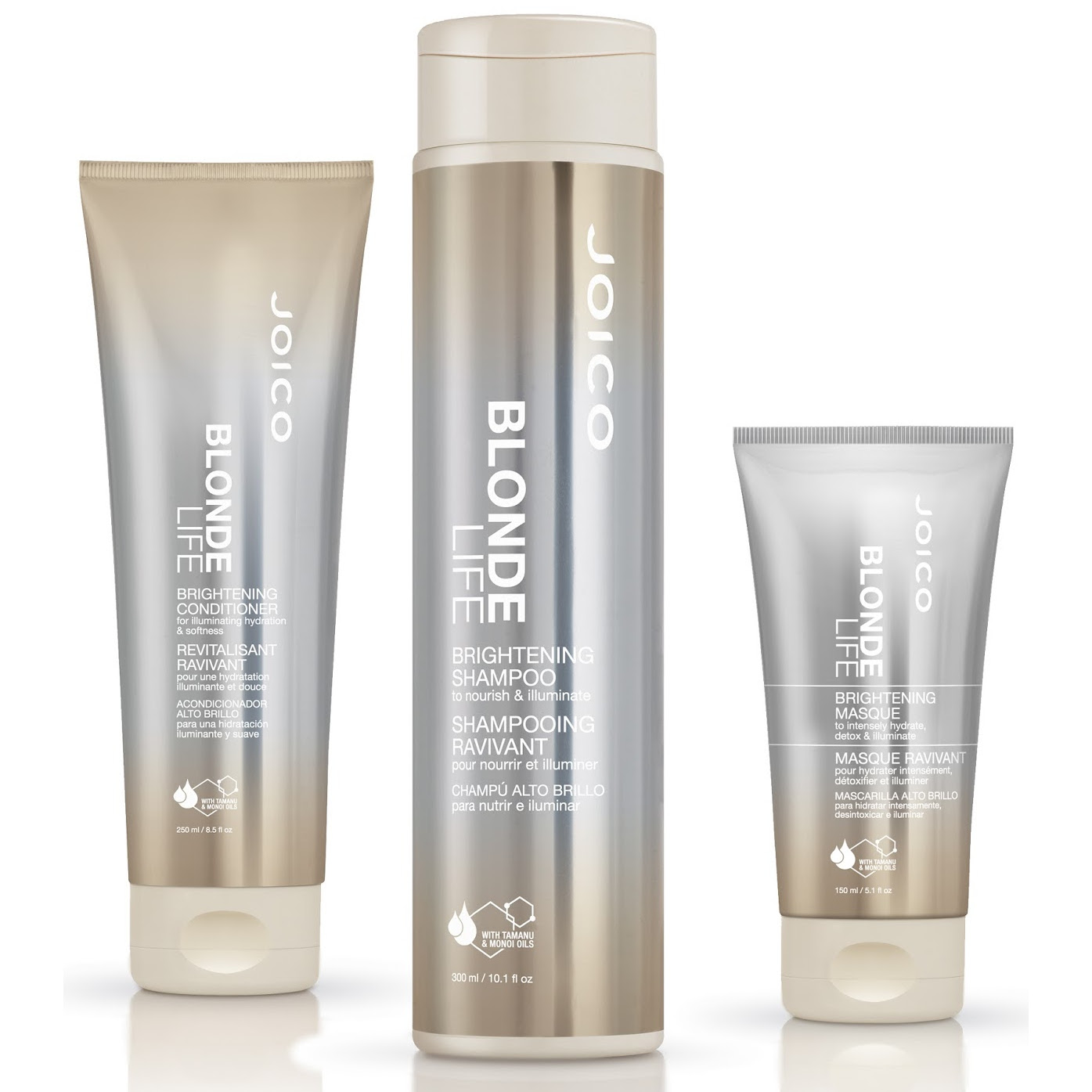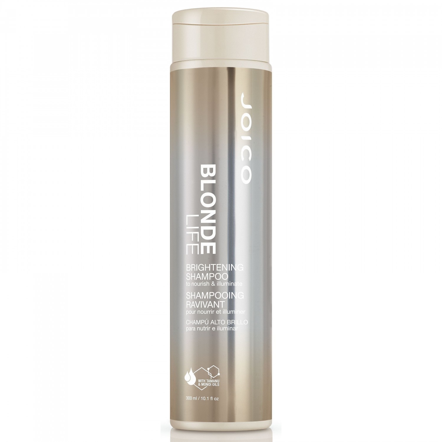 Шампунь предназначен для ухода за светлыми и осветленными волосами. Он тщательно, но очень бережно очищает волосы от загрязнений и себума, не вызывая раздражений, перхоти, ощущения сухости и дискомфорта. Безсульфатный шампунь активно борется с нежелательной желтизной, дарит волосам благородный светлый оттенок, а также питает, смягчает, укрепляет, разглаживает и увлажняет их от корней до кончиков. Шампунь восстанавливает оптимальный рН уровень волос, дарит им здоровый блеск и дополнительный объем без эффекта утяжеления. Продукт оберегает волосы от ломкости, сечения, повреждения и выпадения, а также от повторного проявления нежелательной желтизны. Проверено, что насыщенный и яркий блонд сохраняется до 8 недель (при использовании в комплексе с кондиционером Blonde Life).