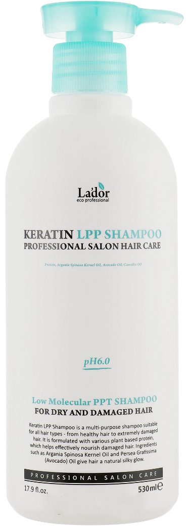 Кератиновый шампунь обеспечит эффективный уход за волосами любого типа. Он тщательно, но бережно очищает локоны от загрязнений, избыточного себума и остатков стайлинга, не пересушивая их и не раздражая кожу головы. LPP — это низкомолекулярные полипептиды, очень мелкие белковые частицы, которые проникают глубоко в структуру волос, выравнивают их кутикулу, придают здоровый вид и эластичность. Шампунь восстанавливает, глубоко питает и интенсивно увлажняет волосы, питает их протеином от корней до кончиков, придает силу, гладкость, блеск и ухоженный вид. Имеет нейтральный кислотно-щелочной баланс, pH 6.0. Не содержит красителей, силиконов, сульфатов и бензофенона.