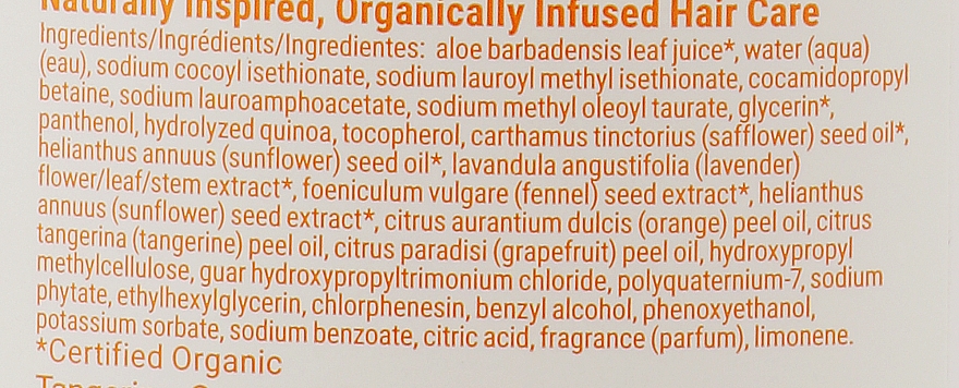 Активные компоненты: гель алоэ вера, масло мандарина, экстракт лаванды, масло подсолнечника, пантенол.